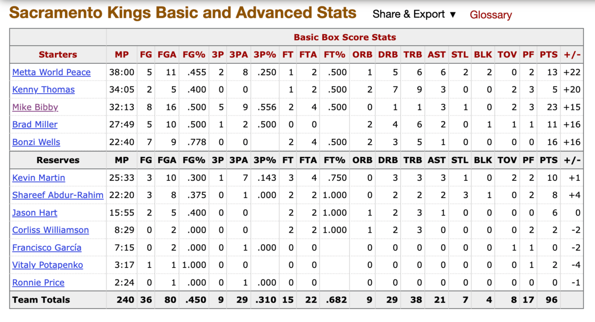 Below is a look at the boxscore from the last time the Kings made it to five games over: